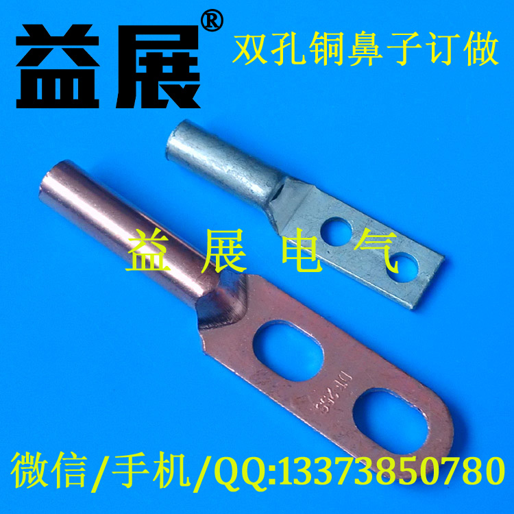 益展電氣主營產品:銅鼻子,銅鋁線鼻子,銅鼻子定做,開口銅端頭,窺口銅鼻子,鍍錫雙孔線鼻子品質保證 以質量求生存,以信用求發展。