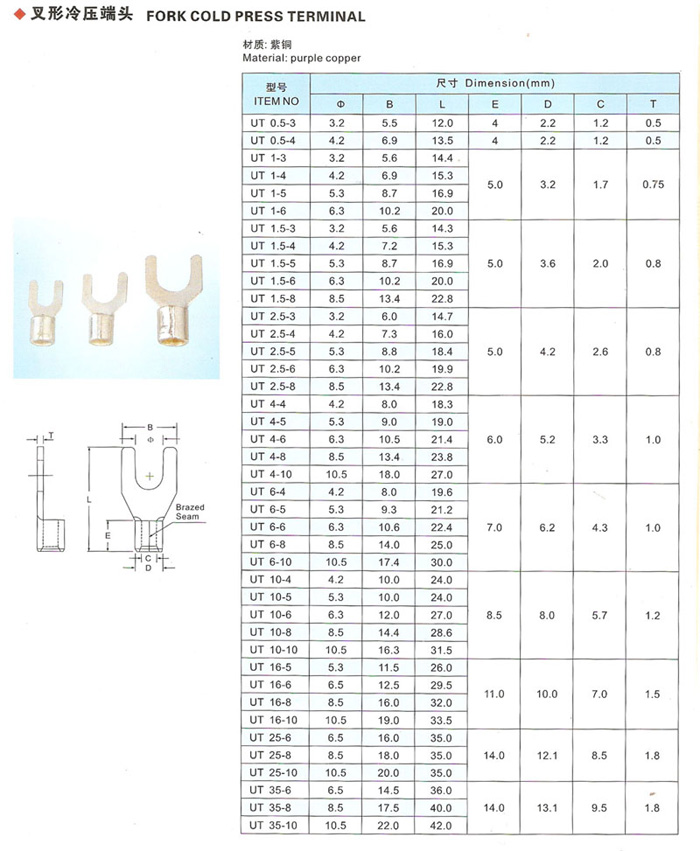 UT叉形冷壓線鼻子 Home您現在的位置:網站首頁 >> 產品中心 >> 冷壓端子