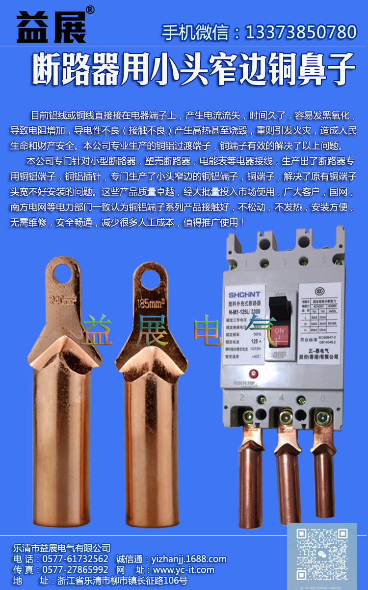 樂(lè)清市益展電氣有限公司 公司地址:浙江樂(lè)清市白象萬(wàn)家工業(yè)區(qū) 聯(lián)系電話:0577-61732562 手機(jī)號(hào)碼:13373850780 聯(lián)系人:張經(jīng)理 E-MAIL:yizhandq@qq.com 網(wǎng)址:http://m.ismail.cc |