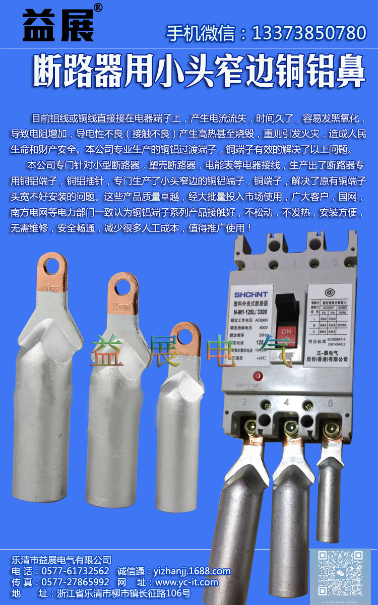 益展電氣專(zhuān)業(yè)生產(chǎn)各種銅鼻子,雙孔銅鼻子,銅鋁過(guò)渡線鼻子,SC窺口線鼻子,雙孔銅鋁鼻子,冷熱縮電纜附件,穿刺線夾,堵油銅鼻子,冷壓端子,C45插針,OT開(kāi)口鼻子,管型冷壓端頭,銅鋁線夾,接線端子,接插件,壓線帽,等各系列配線器材。廠家直銷(xiāo),價(jià)格優(yōu),質(zhì)量高。歡迎與各界人士合作。